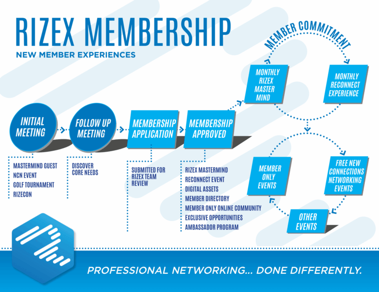 After your membership is activated, we’ll recognize you at your first RizeX event with a welcome gift and a personal introduction to the community.